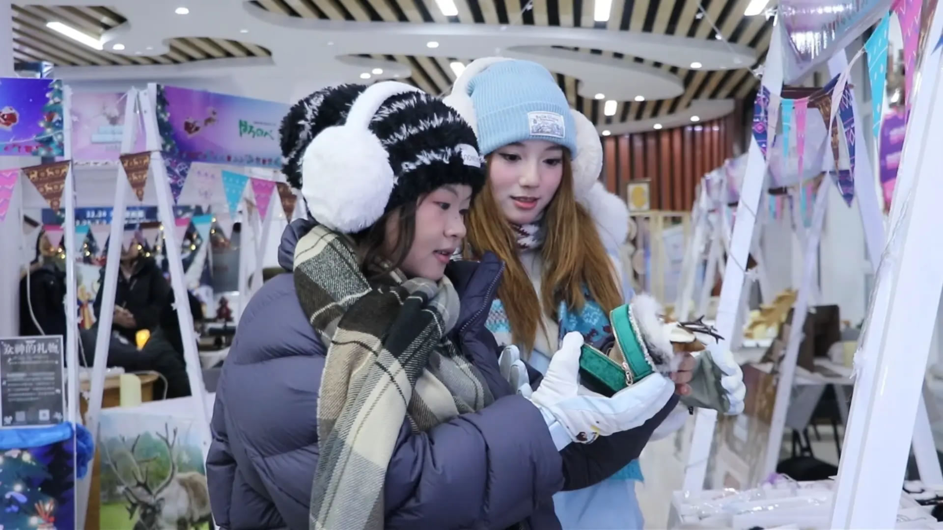 游客在馴鹿極光市集選取手工藝品(靳濤 攝)