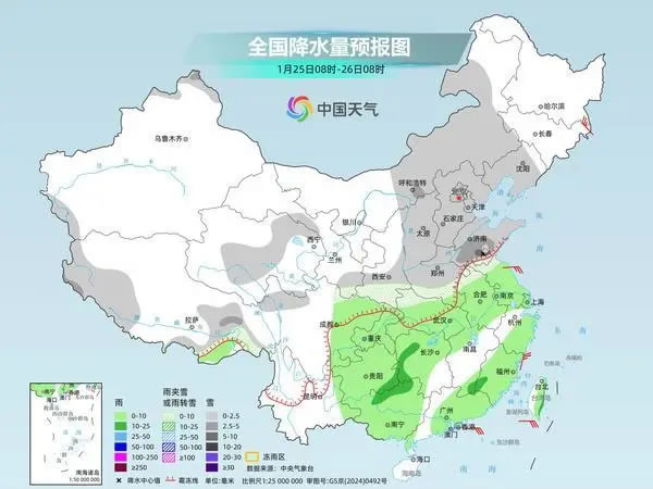 今明兩天,華南多地也將放晴,全國大部的降水將進一步縮減。同時,新疆西部、西藏西部的降雪將持續(xù),局地或現大暴雪。25日起,新一股冷空氣將影響我國,西北地區(qū)東南部、華北、東北地區(qū)、黃淮等地將迎來降雪。