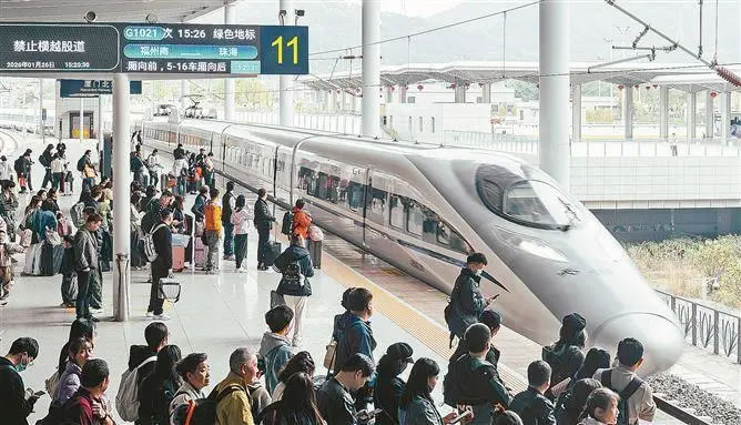 旅客在廈門北站準(zhǔn)備登上前往珠海的高鐵。(本報記者 林銘鴻 攝)