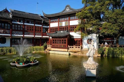 會(huì)景樓:位于豫園中央,登樓一望,全園景色會(huì)于眼底樓三面環(huán)水,周圍栽著香樟、石榴、紫薇、紅楓、羅漢松等許多樹木。