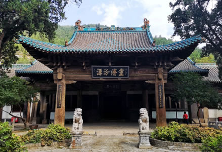 多福寺建于唐代貞元二年(786年),原名崛圍教寺,宋末毀于戰(zhàn)火,后又多次重修。多福寺坐北朝南,三進院落,主要建筑有天王殿、大雄寶殿、藏經(jīng)閣、千佛殿、黑龍殿、文殊閣等,其中大雄寶殿內(nèi)有彩塑14尊,兩山及后墻滿繪佛教故事壁畫,與建筑同期,為明代壁畫。寺前山巔磚塔,仍是宋代原構。寺內(nèi)有霜紅龕,為明末清初太原著名學者傅山隱居處。
