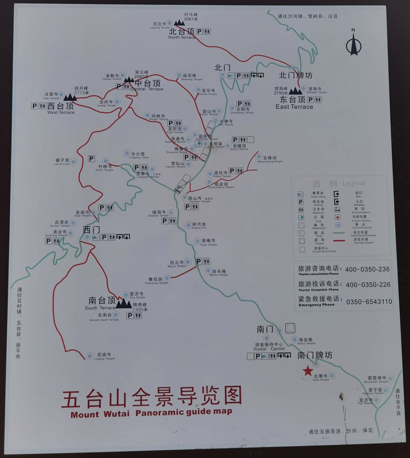 五臺(tái)山,方圓250公里,總面積2837平方公里。以臺(tái)懷鎮(zhèn)為中心,周圍屹立著東、西、南、北、中五個(gè)山峰,高出云表,山頂無林木,如壘土之臺(tái),稱作五臺(tái)。最高點(diǎn)北臺(tái)葉斗峰海拔3058米,被稱為“華北屋脊”。