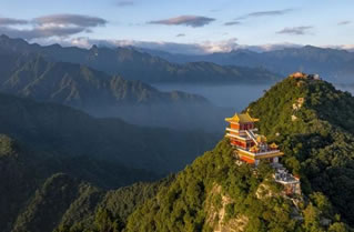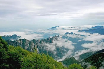 太白山千峰競秀,萬壑藏云。在海拔2000米以上的地方,可看到極其壯觀的云海,以平安寺為最。平安寺地處海拔2700米的山梁上,周圍群峰聳立拱峙,勢若圍屏,山峰間溝壑寬闊,深邃莫測。向南展眸,拔仙臺、跑馬梁、鰲山相連如駝峰顯現(xiàn)。向西北遠(yuǎn)眺,桃川河帶狀蛇迥,隱隱可見。站在平安寺,但見云層如海濤洶涌,變幻多端。時而“涌濤掀浪”,不可遏止,時而“風(fēng)平浪靜”,霧散云匿,時而濃云密霧鋪天蓋地,時而白云輕如鮫綃。朝、夕晴朗之時,云海霞光映金,景色煥然一新。置身云海之中,使人有進(jìn)入神話傳說的仙境之感。