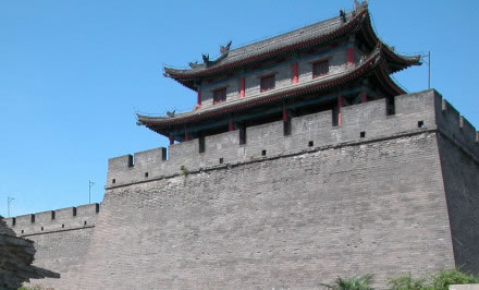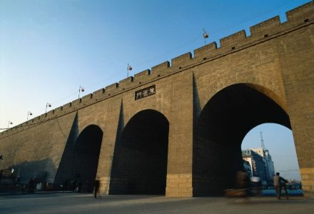 雄偉壯觀的西安城墻已成為市區(qū)最吸引人的觀光勝地之一。沿城墻外側(cè)已建成“環(huán)城公園”,成為城市居民晨練的絕佳活動(dòng)場(chǎng)所。 |