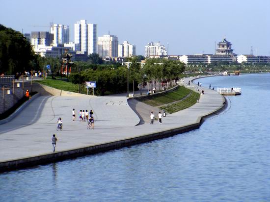 咸陽湖,西起咸陽市秦都區(qū)渭濱辦南營村,東至機場高速公路橋,全長15.56公里。一期規(guī)劃的“咸陽湖”位于咸陽鐵路橋以東450米處至中華小區(qū)西側,長5500米,水面寬度350至400米。