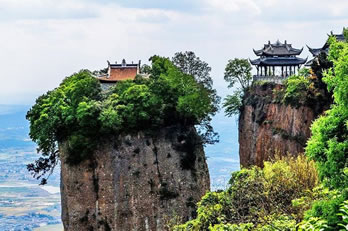 二絕鐵索飛渡:連接主峰的鐵索懸橋初建于唐代,先后換修6次。山上還有身懷絕技的飛人,在鐵鏈上表演,行走如風(fēng),被譽(yù)為“華夏一絕”。