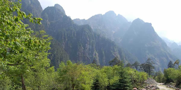 山上的原始森林除了松、杉、樺外,還有珍貴的珙桐、樟和楠木,山上各色野花爭奇斗艷,更有那四季輪流開放的三、四十種杜鵑。從山腳往上,一路景色,變化萬千.山腳溪水潺潺,岸芷汀蘭;山腰花紅柳綠,草木蔥蘢;高山霜葉片片,層林玉樹瓊枝,晶花、夏綠、秋實(shí)、冬雪之風(fēng)光于一處,融自然之美景于一山。自道貫通路便可成為一條很好的游山道。