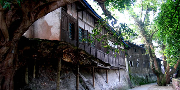 古榕樹(shù)下的老街 柳江的老街距曾家大院不過(guò)數(shù)十米。穿過(guò)狹窄的胡同,一個(gè)整潔古樸的小鎮(zhèn)出現(xiàn)了。木門、木窗、青瓦以及瓦上不經(jīng)意長(zhǎng)出的幾絲綠色,與鋼筋水泥群碉式的大都市相比,多了幾分詩(shī)意。 老街上的住戶很少了。去一個(gè)地方,不用多問(wèn),就看當(dāng)?shù)厝说难凵癖懵灾蟾。納鞋底的婦女,打川牌的漢子,在家休息的學(xué)子,路上自由奔跑的狗,這就是當(dāng)時(shí)小鎮(zhèn)的全部。惟一稍顯嘈雜的聲音便是我們的腳步聲和贊美聲。 順著小鎮(zhèn)往東行走,在遮天蔽日的大榕樹(shù)的身影下,到了花溪河邊。遠(yuǎn)山含黛,朦朧中竹影搖曳,順著小鎮(zhèn)往東行走,在遮天蔽日的大榕樹(shù)的身影下,到了花溪河邊。遠(yuǎn)山含黛,朦朧中竹影搖曳,炊煙裊裊,山、樹(shù)、青瓦木屋,一并倒映在清亮的小河之中。小河上有人為筑成的石路,當(dāng)?shù)厝朔Q之為跳蹬,是連接兩岸的通道,石路的鋪設(shè)阻止了水的流動(dòng),涓涓細(xì)流在這里駐足停留,平靜得如同鏡子,成了當(dāng)?shù)厝思忆揭孪床说牡胤,也成了魚(yú)蝦談情說(shuō)愛(ài)的平靜港灣。美中不足的是跳蹬上布滿了垃圾,讓不少遠(yuǎn)方來(lái)客感到一種失落和遺憾。 文物保護(hù)單位 走累了,坐在美人靠上是一種愜意,木質(zhì)的建筑顯得很有親切感,屋檐下那些透空鏤花的物件無(wú)一不透出藝術(shù)的靈氣。眺望河對(duì)岸的一字排開(kāi)的柳江古鎮(zhèn),能覺(jué)察到當(dāng)年主人的幾許孤傲之氣。 時(shí)光流逝,物是人非。無(wú)論曾家大院修建得多么有氣魄,裝修得多么豪華,在今天都讓人感到莫名的寂寥。偌大的院落鮮有人跡,有時(shí)大門緊閉,只能在外面偷偷打望一番。這座豪宅在解放后曾作為鎮(zhèn)政府的辦公樓,為了保護(hù)古跡,鎮(zhèn)政府又遷了出來(lái),至今樓上樓下仍散落著許多已經(jīng)無(wú)用的日歷、辦公桌等,不知是誰(shuí)還在二樓的屋檐下養(yǎng)了幾只鴿子,它們與雞成了這里的居民。 這個(gè)美其名曰的文物保護(hù)單位,到處是灰塵和垃圾,沒(méi)有人管理。游客為曾家大院的建筑所折服,然后又在那種殘敗中遺憾而去。保存這樣完好,又極具特色的清代建筑是不多見(jiàn)的,這樣的保護(hù)顯然沒(méi)有實(shí)質(zhì)作用,沒(méi)準(zhǔn)哪天某位游客不小心留下的煙頭會(huì)將它付之一炬,成為永遠(yuǎn)的痛。