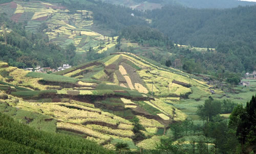 自然地理 含增鎮(zhèn)屬丘陵、高山相間地形; 盤江(通口河)東岸的吳家后山、乾元山為大山地帶,東南麓為丘陵。最高海拔為2106米,最低海拔540米,地型起伏變化大,地貌大多為喀什特,基巖溶洞陡坎多,巖石裸露地面多, 地質(zhì)多為石灰石風(fēng)化層,境內(nèi)年降雨量700--1200毫米左右,氣溫較低,年平均氣溫15℃,平均日照900時(shí)左右,林木生長(zhǎng)茂密,屬國(guó)家天然林天保護(hù)區(qū)。2000年底,該鎮(zhèn)有耕地面積6214.8畝, 其中田1791畝,地4423.8畝,天然林保護(hù)面積73130畝,森林覆蓋率55%,糧食作物主要以玉米、水稻、小麥為主, 油料作物以油菜、花生為主,經(jīng)濟(jì)作物主要有生姜、大蒜、海椒、薇菜等。養(yǎng)殖業(yè)以養(yǎng)豬、羊、牛為主,小家禽有雞、鴨、鵝、兔等。 自然條件 “四面青山環(huán)繞,生態(tài)純美;冬無嚴(yán)寒夏無酷暑是天然養(yǎng)生地”凡到過江油含增鎮(zhèn)的人,都會(huì)這么評(píng)價(jià)山城含增。這里清新宜人的環(huán)境的確令人稱道,尤以綠色植物景觀墻吸引人。這些數(shù)量眾多、規(guī)模宏大的景觀墻,如一道道綠色屏風(fēng),把含增裝扮得清幽無比。1950年代前,含增鎮(zhèn)跟江油其它鄉(xiāng)鎮(zhèn)一樣,并不為外界所知。國(guó)家實(shí)施“三線建設(shè)”后,長(zhǎng)城特殊鋼公司三分廠落戶這里,含增便熱鬧起來,也現(xiàn)代起來,進(jìn)而成為一座小城。與其它地方的“三線建設(shè)”不一樣的是,這里的職工生活區(qū)與廠區(qū)因大山的阻隔,相距較遠(yuǎn),沒有連在一起。含增便跟噪音、粉塵和一些有害化學(xué)物質(zhì)絕了緣,保持了清新、恬淡、自然的個(gè)性。過去,含增在城鎮(zhèn)建設(shè)上不太注重環(huán)境綠化,直到1980年代后,才有了明顯改觀。據(jù)三分廠含增街道辦主任張善進(jìn)介紹,這是由于生活垃圾沒有及時(shí)處理,造成了環(huán)境污染所致。在環(huán)境美化上,含增人是動(dòng)了腦筋的。由于含增地處山區(qū),對(duì)環(huán)境的整治便不能按常規(guī)思維進(jìn)行,他們采取依山就勢(shì)、見縫插綠、因墻添綠的方式全面推進(jìn)。在盤江賓館的街對(duì)面,有一道高5米、長(zhǎng)50米的景觀墻。山坡上修建的是供應(yīng)全鎮(zhèn)一萬多人使用的自來水塔。為了綠化美化這塊巨大墻體,精明的含增人在墻的頂部栽種了迎春花和常春藤。一年四季,季季景色各不相同。早春,迎春怒放,黃花朵朵,向人們傳遞著春的氣息;夏天,常春藤碧綠如洗,枝蔓從墻頭攀爬下來,恰似一道綠色瀑布從天而降;秋冬季節(jié),藤葉紅黃相間,猶如一幅五彩繽紛的國(guó)畫。迎賓路旁,有長(zhǎng)百米的建筑填方地段。含增人匠心獨(dú)運(yùn),設(shè)計(jì)了兩層仿古觀景臺(tái),路邊建起了仿古的樓臺(tái)亭閣,供人們休閑娛樂。整個(gè)建筑全用植物造景,給人以步移景換的感覺。樓臺(tái)邊有古樹環(huán)繞,亭子上有紫藤攀爬,水榭邊有杜鵑依偎,而兩層觀景臺(tái)前,種有碧綠的倒槐和塔柏;后墻上,攀爬能力極強(qiáng)的爬山虎正極力擴(kuò)張地盤。從遠(yuǎn)處看,兩道后墻如兩塊綠色掛毯貼在墻上。含增街道辦后的山坡上,建設(shè)者還巧妙地利用盤江盛產(chǎn)的丹景石造景,上刻李白的《訪戴天山道士不遇》等詩(shī)篇,四周栽上月季、黃楊等綠色植物,一股清新的文化氣息撲面而來。在含增,很難發(fā)現(xiàn)兩塊形狀相似、栽種植物一致的綠色墻體。這又是含增人的精明之處,他們除用藤本植物和灌木作為遮掩墻體的綠色植物外,還廣泛利用喬木巨大的遮陰功能,掩飾墻體。從生活區(qū)通往廠區(qū)的盤江路兩邊,茂盛、壯實(shí)的夾竹桃形成了一條綠色通道。白的、粉紅的花朵迎風(fēng)招展,有如成群的處子在舞蹈。在迎春路邊,成排的法國(guó)冬青枝繁葉茂,連綿不絕,恰好擋住了裸露的山巖。“經(jīng)過20多年不懈努力,綠色意識(shí)早已深入含增人的心里。”張善進(jìn)自豪地說。 經(jīng)濟(jì)發(fā)展 含增鎮(zhèn)工業(yè)經(jīng)濟(jì)發(fā)展條件優(yōu)越,態(tài)勢(shì)良好。 2004年,全鎮(zhèn)國(guó)民生產(chǎn)總值2 100萬元,其中鄉(xiāng)鎮(zhèn)企業(yè)總值 17589萬元,工業(yè)總產(chǎn)值12680萬元,財(cái)政收入230萬元,農(nóng)民人均純收入3255元,完成招商引資1115萬元。由香港瑞然集團(tuán)天安石材公司對(duì)石灰石礦進(jìn)行開采深加工,制成裝飾墻體磚、地板磚遠(yuǎn)銷日本、美國(guó)。 含增鎮(zhèn)旅游資源十分豐富,鎮(zhèn)政府確立了將旅游業(yè)作為支柱產(chǎn)業(yè)的發(fā)展戰(zhàn)略,積極為旅游企業(yè)創(chuàng)造良好的經(jīng)營(yíng)空間,特別是全力支持白龍宮、香水湖、天音巖重點(diǎn)景區(qū)開發(fā)和建設(shè),大力促進(jìn)省級(jí)風(fēng)景名勝區(qū)乾元山道路的改造和接待能力的提高。加強(qiáng)旅游市場(chǎng)管理,提高服務(wù)質(zhì)量,樹立良好的對(duì)外形象鎮(zhèn)政府還積極發(fā)展交通運(yùn)輸、餐飲、娛樂等行業(yè),促進(jìn)第三產(chǎn)業(yè)發(fā)展。 含增鎮(zhèn)農(nóng)業(yè)發(fā)展立足山區(qū)資源優(yōu)勢(shì),大力發(fā)展無公害農(nóng)產(chǎn)品、藥材、山野菜、反季節(jié)蔬菜,農(nóng)業(yè)產(chǎn)業(yè)化主要依托朝匯農(nóng)業(yè)科技公司和蒼林藥材公司,帶動(dòng)農(nóng)戶發(fā