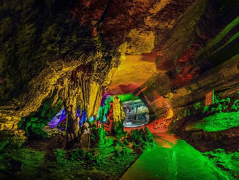 可謂山山有洞,洞中有洞,洞洞毗鄰,各具特色。洞內(nèi)可游面積在2萬平方米以上的溶洞有:牛角嵌、獅子洞、中峰洞、宋家洞、樓房洞、老龍洞、仙人洞、仙女洞等40余個。這些溶洞,或臨清溪,或處絕壁,有的須匍匐而進,有的要潛水而入,洞中景觀都保持著原始風貌。其中已開發(fā)的中峰洞、獅子洞、宋家洞、樓房洞等景觀奇特,獨樹一幟。三潮水、變色泉、風泉、跳魚泉等異彩紛呈,蔚為壯觀。景區(qū)最大的溶洞中峰洞又名佛光洞,因洞內(nèi)顯影佛光而得名。它集雄偉、險峻、奇麗、神秘于一體。分上洞、中洞、下洞三層;大洞、中洞、小洞三種;旱洞、水洞、風洞三類;共由上、中、下、水、峽五部分構成;是一座多層次、多類型、多特色的地下溶洞世界。全長1.5萬余米,面積60萬平方米,已開發(fā)7000米,可游面積20萬平方米。洞內(nèi)阡陌縱橫,狀如蛛網(wǎng),峽谷深淵,氣勢磅礴,乳筍林立,石芽參差。該洞有三個出口,洞道空間大,冬暖夏涼,氣候宜人,洞內(nèi)溫度、濕度、空氣皆優(yōu)。歷年溫度恒定在18℃,濕度為96%至98%,在國內(nèi)外溶洞中絕無僅有洞內(nèi)有仙風神韻的瑤池仙境,奇幻異象的巴人風情,仰天長嘆的霸王別姬,參憚悟道的萬佛朝圣,天造地設的巴國遺風,紫微高照的佛光普照,水光山色的天河放舟,歲月鐫刻的滄海桑田,是一座地下奇城。