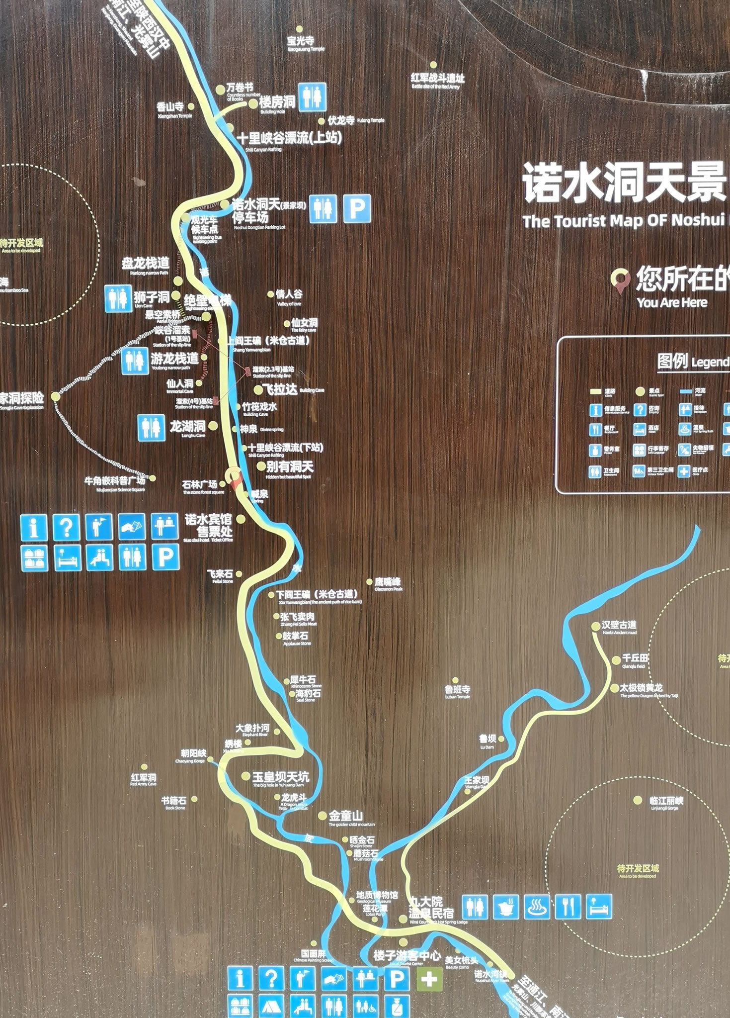 諾水河風景名勝區(qū)內(nèi)金童山至中峰洞為腹心地帶,沿河兩岸奇峰突兀,峭壁如削,頗有桂林景致、三峽險趣,其間地下溶洞密布,洞洞相連,洞中有洞,已初步探明景區(qū)溶洞128個。