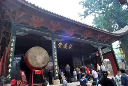 時(shí)雨亭旁的這座高臺(tái)建筑叫家慶堂。建于明代,叫啟元殿,清代培修之后更名為家慶堂。所謂“家慶堂”是指文昌帝君張亞子舉家歡聚之地。早在北宋初期,宋太祖趙匡胤就對(duì)張亞子一家8位主要成員加封圣號(hào);南宋初年宋高宗趙構(gòu)追封4位;又過了二十多年,南宋咸淳五年(1269年)再一次對(duì)張亞子的公主和女婿封了圣號(hào),使加封的家庭成員達(dá)到14位。