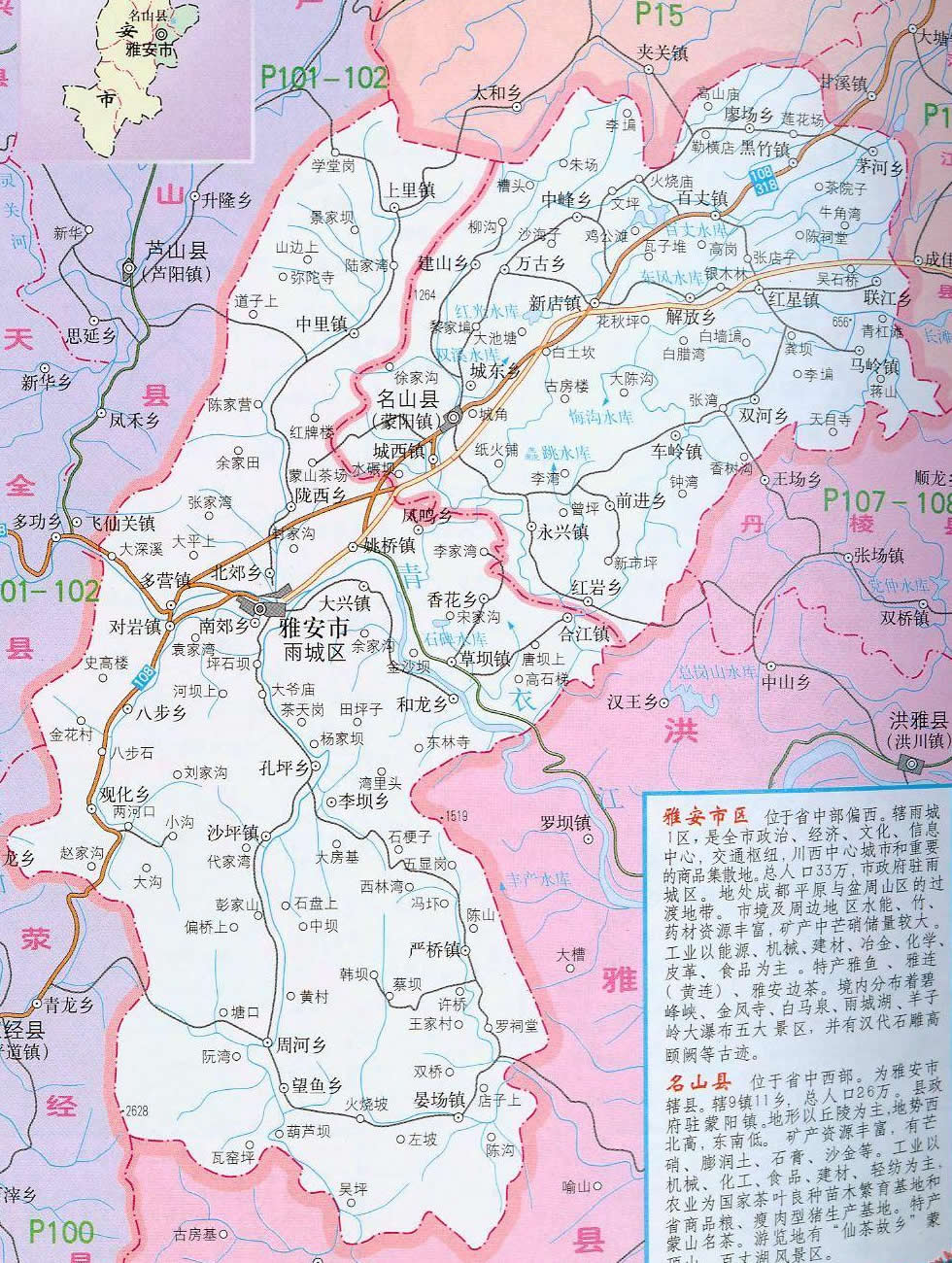 雅安市雨城區(qū)是古南方絲綢之路,曾為西康省省會(huì),F(xiàn)為雅安市人民政府所在地,是全區(qū)政治、經(jīng)濟(jì)、文化、科技和交通中心。區(qū)境幅員面積1066.99平方公里。轄24個(gè)鄉(xiāng)鎮(zhèn),191個(gè)村,4個(gè)街道辦事處,32個(gè)居委會(huì),常住人口32萬(其中城區(qū)人口13萬)。氣候宜人,年平均氣溫16.2℃,冬曖夏涼,空氣清新,享有“雨城”之美稱。屬亞熱帶濕潤季風(fēng)氣候。1983年9月,經(jīng)國務(wù)院批準(zhǔn)改設(shè)雅安市至2000年12月,2000年6月,經(jīng)國務(wù)院批準(zhǔn)改設(shè)雅安市雨城區(qū)至今。1988年被國家列為對外開放城市,1998年被省上列為可持續(xù)發(fā)展實(shí)驗(yàn)區(qū)。是四川省歷史文化名城和新興的旅游城市。