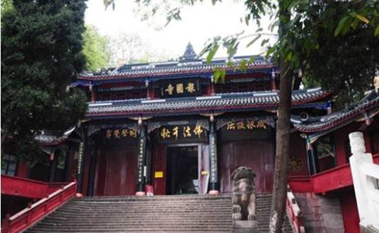 樂至報(bào)國寺位于四川省樂至縣城東北二十公里龍門鄉(xiāng)之金龜山,占地三萬多平方米。據(jù)《樂至縣志》記載,報(bào)國寺始建于隋開皇二年(公元582年),距今已有一千四百多年歷史。歷盡滄桑,幾度興廢;如今值國運(yùn)昌盛,佛教興隆,歷兩代住持之艱辛締造,廣大信眾之盡心護(hù)持,終使蜀中現(xiàn)存不多的千年古剎歷劫重光!皥(bào)國”二字作為寺廟名稱在叢林中有多少,沒有進(jìn)行過考證。在川內(nèi)還有峨眉山下的“報(bào)國寺”,因此,特別將樂至縣境內(nèi)的報(bào)國寺加上“樂至”二字,以示區(qū)別。 “報(bào)國”作為樂至報(bào)國寺的寺名,一是因?yàn)榉鸾痰淖谥际恰扒f嚴(yán)國土,利樂有情”,佛教提倡報(bào)國家恩,報(bào)眾生恩。二是據(jù)樂至縣志記載,很久以前這里是一片墳地,一位皇姑曾埋葬于此。