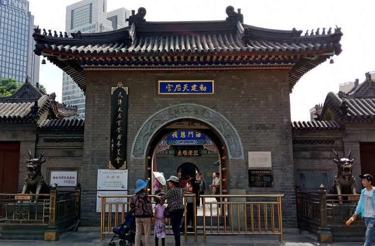 天后宮是古文化街的中心地帶,在天津很早就有“先有天后宮,后有天津衛(wèi)”之說。在天后宮內(nèi)供奉的是“天后娘娘”——林默,其廣場(chǎng)有兩棵豎立了600余年大帆桿,在廣場(chǎng)的東側(cè)、臨近海河方向有一座戲樓,天后宮廣場(chǎng)形成了相對(duì)獨(dú)立的空間。
