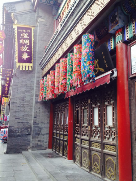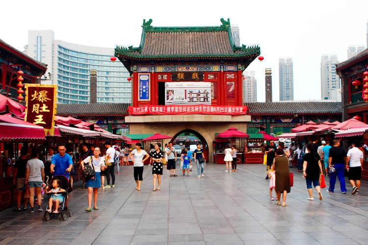 天津古文化街于一九八六年元旦建成開業(yè),整體建筑為仿清民間式建筑風(fēng)格,天后宮(媽祖廟)位于全街的中心。全街近百家店堂,有經(jīng)營(yíng)天津地方特色的楊柳青年畫的楊柳青畫社,經(jīng)營(yíng)泥人彩塑的泥人張彩塑工藝品經(jīng)營(yíng)部,有經(jīng)營(yíng)文房四寶,名人字畫的四寶堂,春在堂,有經(jīng)營(yíng)文物古玩的文物公司萃文齋門市部,還有經(jīng)營(yíng)全國(guó)各地的景泰藍(lán),雙面繡,牙玉雕,藝術(shù)陶瓷,中西樂器金銀飾品等上萬種名優(yōu)工藝品的幾十家店堂,各種商品貨真價(jià)實(shí),物美價(jià)廉,商家以質(zhì)量和信譽(yù)吸引中外游客。