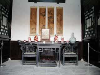 在甬道西側(cè),現(xiàn)辟為"石府復(fù)原陳列"區(qū)。這是當(dāng)年石家會(huì)晤賓客、娛樂(lè)消閑、誦經(jīng)禮佛的場(chǎng)所。裝飾陳設(shè)豪華。有四扇木雕花屏,被稱為國(guó)寶,當(dāng)時(shí)工價(jià)1200兩白銀,一朵花、一片葉就合6兩白銀。室內(nèi)設(shè)備講究。有一間客廳地下有暖風(fēng)通道,冬天在墻外地爐里每天燒木炭200斤,向室內(nèi)地下供熱。