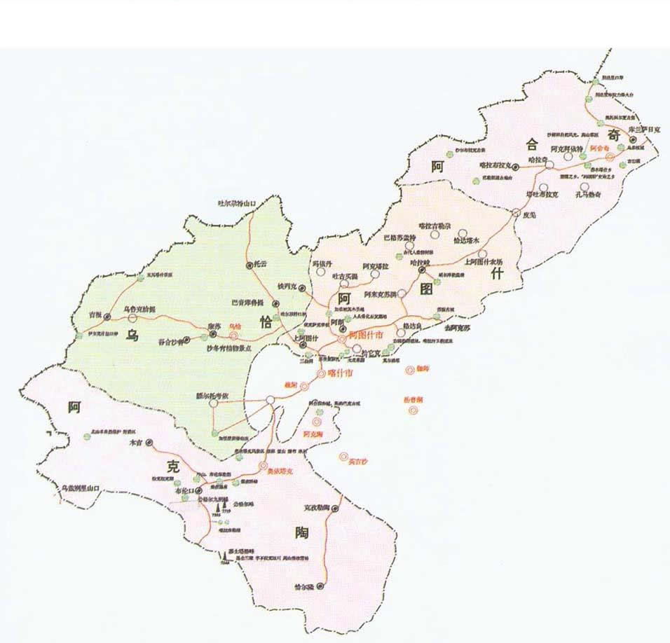 阿克陶縣 面積24046平方千米,人口230340,政府駐阿克陶鎮(zhèn),下轄5個鎮(zhèn)、7個鄉(xiāng)
