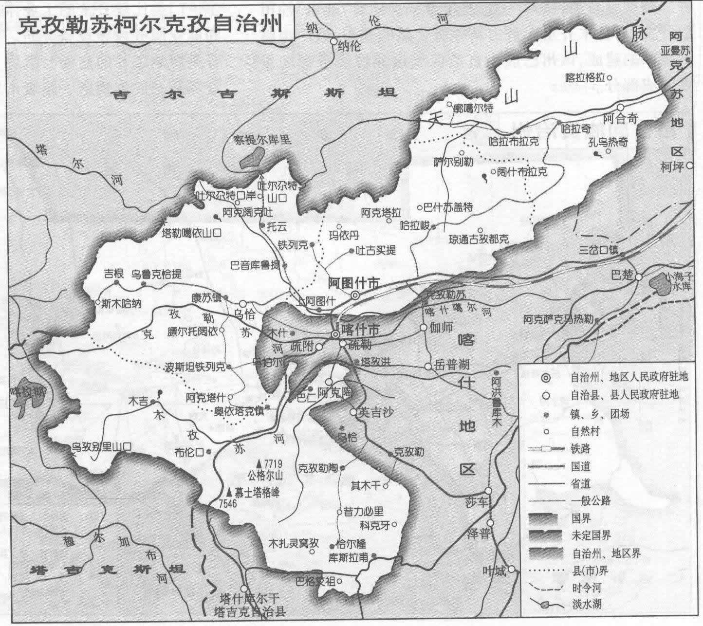 克孜勒蘇柯爾克孜自治州轄1個縣級市、3個縣: