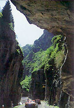 天池石門(mén):景名為“石門(mén)一線”,海拔1500米,位于大天池以北5.9公里處,為一段被三工河古河道切割形成的石峽谷,這道山口是進(jìn)入風(fēng)景區(qū)的天然門(mén)戶;峽谷長(zhǎng)約百余米,最窄處僅十來(lái)米寬,兩側(cè)直立的巖壁高逾數(shù)十米,形勢(shì)峻險(xiǎn),仰視見(jiàn)一線天,側(cè)邊盤(pán)繞三工河水。