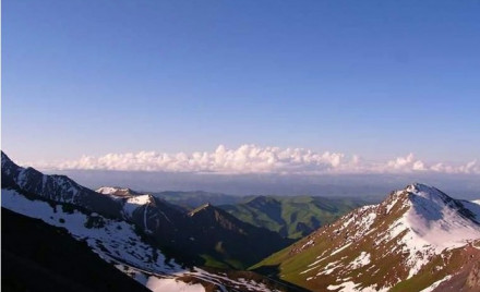 登山大營(yíng):在草甸草原自然景觀區(qū)和其上的高山礫漠自然景觀區(qū)的交接地帶,海拔為3540米,登博格達(dá)峰的大本營(yíng)就設(shè)在這里。從天池南岸到大本營(yíng),登山者一般走下面兩條路:一是沿大東溝向東折南翻過(guò)“三個(gè)岔達(dá)坂”,這條路較為平緩;一是向南折東沿將軍溝翻過(guò)“以肯起達(dá)坂”,這條路則較為陡峭。兩條路的全程分別為25公里和30公里。