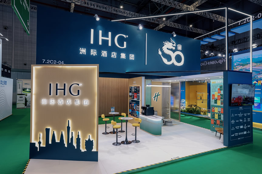 進博八載,全勤筑夢 作為進博會的“全勤生”,洲際酒店集團連續(xù)八年亮相這一國家級開放平臺,持續(xù)深化與各方伙伴的交流合作,穩(wěn)步提升品牌影響力。今年,集團以入華五十周年為契機,傾力打造以“洲際在華五十載”為主線的展區(qū),以煥新的敘事方式回顧集團與中國文旅攜手發(fā)展的半世紀征程——從伴隨文旅產(chǎn)業(yè)的起步,到見證其成長為“支柱產(chǎn)業(yè)、民生產(chǎn)業(yè)、幸福產(chǎn)業(yè)”三位一體的重要經(jīng)濟增長極。展區(qū)通過時間軸、數(shù)據(jù)可視化等多元模式生動呈現(xiàn)了品牌傳承與創(chuàng)新成果,并勾勒出集團在大中華區(qū)市場的廣闊布局與持續(xù)成長的版圖,充分展現(xiàn)洲際酒店集團深耕中國、融入行業(yè)、共創(chuàng)未來的堅定步伐。