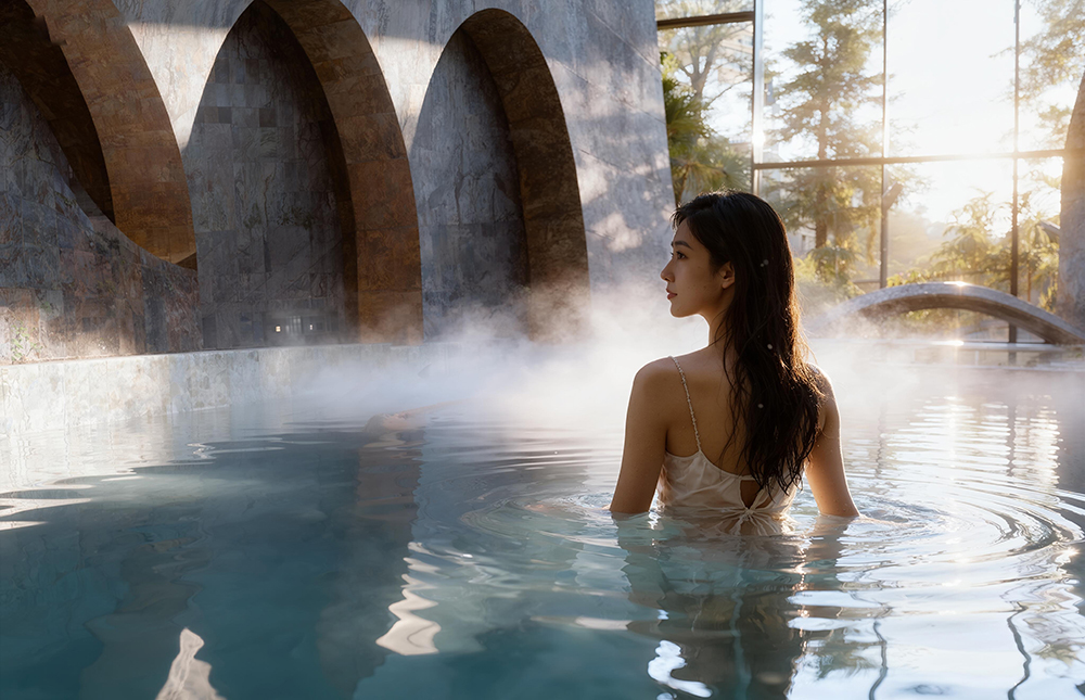 (圖:客人在酒店十七長池體驗(yàn)湯泉)
