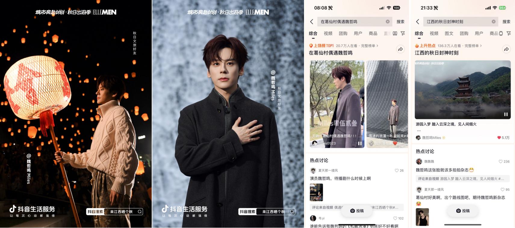抖音牽手“秋日男友”魏哲鳴前往江西上饒葛仙村拍攝文旅宣發(fā)視頻引發(fā)廣泛關(guān)注,路透內(nèi)容#在葛仙村偶遇魏哲鳴 登上上饒同城榜TOP1;主視頻發(fā)布后,#江西的秋日封神時(shí)刻 更登頂同城榜及全國(guó)種草榜TOP6;顒(dòng)還與綜藝《今晚組個(gè)局》實(shí)現(xiàn)聯(lián)動(dòng),吳昕、代露娃、郭俊辰、何洛洛等明星演員前往上饒拍攝定制化文旅內(nèi)容,#上饒葛仙村千燈會(huì)偶遇明星 #何洛洛代露娃上饒葛仙村浪漫赴約 等路透內(nèi)容與節(jié)目看點(diǎn)登頂上饒同城榜TOP1,#組局團(tuán)在上饒千燈會(huì)一起祈愿 搶占同城榜TOP2。明星效應(yīng)有效激發(fā)用戶出行意愿,葛仙村交易額同比403%顯著增長(zhǎng),持續(xù)引爆目的地&商家出圈。