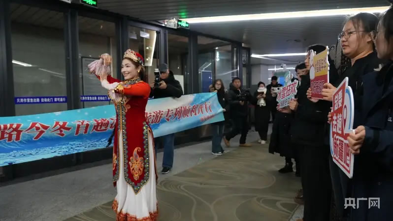 央廣網(wǎng)烏魯木齊12月13日消息(記者丁安)12月12日23時(shí)20分,隨著Y925次旅客列車從新疆烏魯木齊站鳴笛啟程,拉開了今冬新疆鐵路冰雪旅游的序幕。近百名來自浙江、江蘇、天津等地的游客乘坐專列,從烏魯木齊出發(fā)直達(dá)“中國雪都——阿勒泰”,開啟為期4天的冰雪之旅。