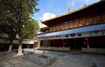 八世達賴在此基礎(chǔ)上擴建了恰白康(閱覽室)、康松司倫(威鎮(zhèn)三界閣)、曲然(講經(jīng)院),把舊有的水塘開挖成湖,按漢式亭臺樓閣的建筑風(fēng)格,在湖心建了龍王廟和措吉頗章宮(湖心宮),兩側(cè)架設(shè)了石橋。