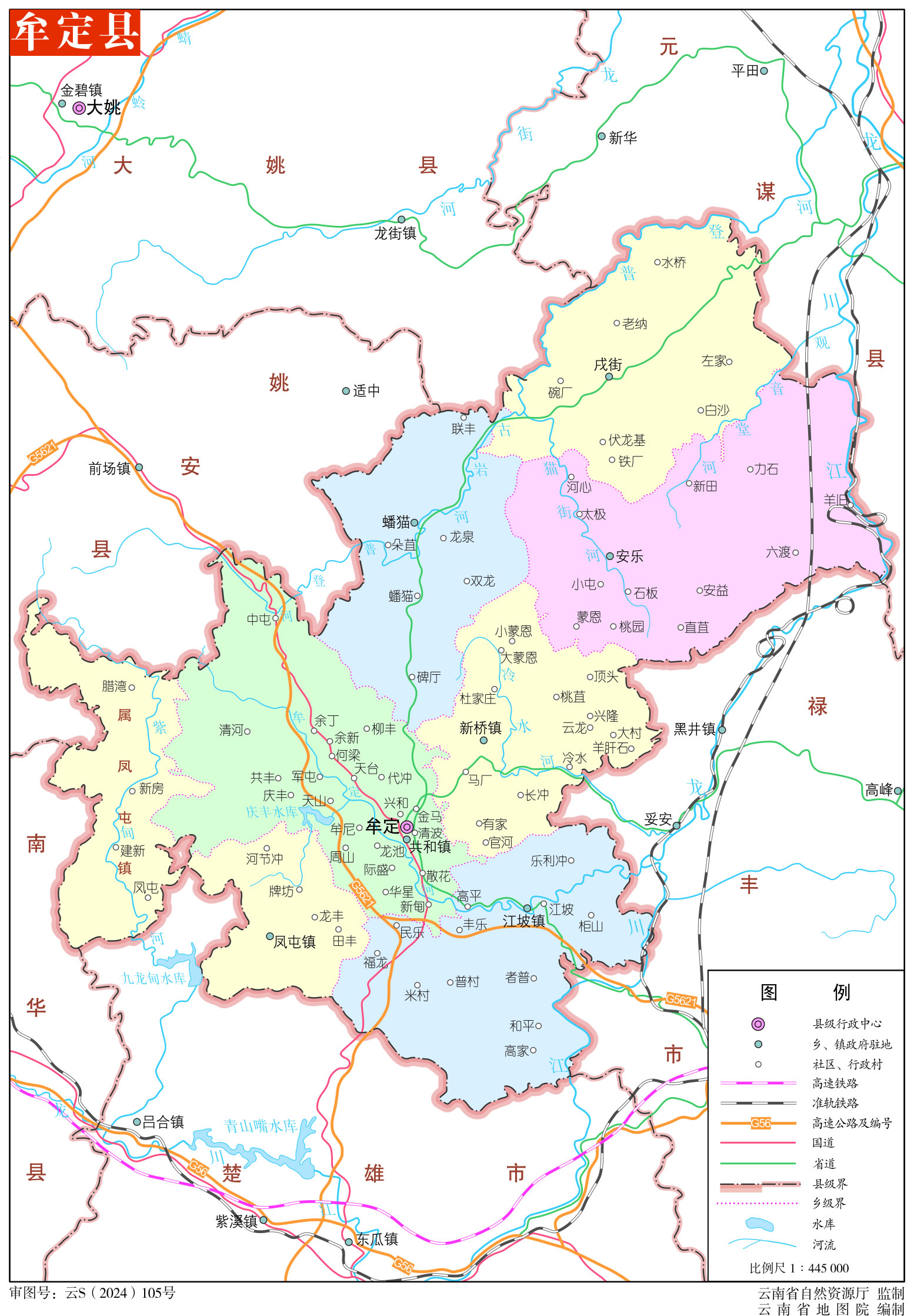 牟定縣轄4個(gè)鎮(zhèn)、3個(gè)鄉(xiāng):