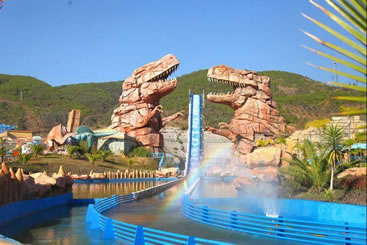 站在觀景臺,重現(xiàn)在我眼前的是“侏羅紀(jì)世界”,侏羅紀(jì)世界是世界恐龍谷中最刺激、游樂項目最豐富的游覽區(qū)。自然的山谷地貌,瀑布、河流、湖泊,真實再現(xiàn)了侏羅紀(jì)時代恐龍王國的生活場景。
