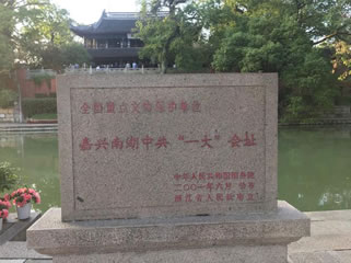民國(guó)10年(1921)8月初,中國(guó)共產(chǎn)黨第一次全國(guó)代表大會(huì)在南湖的一艘游船上閉幕,宣告中國(guó)共產(chǎn)黨成立。從此,南湖成為光榮的革命紀(jì)念地,載入了革命史冊(cè)。1959年10月1日,南湖革命紀(jì)念館成立,以湖中煙雨樓作為館址,按照當(dāng)年中共“一大”代表乘坐的游船樣式仿制的革命紀(jì)念船,陳列在煙雨樓下萬(wàn)福橋旁,從那以后,每年有數(shù)十萬(wàn)游客前來(lái)瞻仰,接受革命傳統(tǒng)教育。1985年,鄧小平為南湖革命紀(jì)念館題寫(xiě)?zhàn)^名。建國(guó)以來(lái)至1990年,許多黨和國(guó)家領(lǐng)導(dǎo)人如董必武、郭沫若等都曾來(lái)南湖視察、游覽。