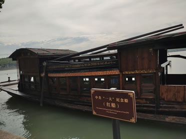 1921年7月23日,中國(guó)共產(chǎn)黨第一次全國(guó)代表大會(huì)在上海法租界望志路106號(hào)(今興業(yè)路76號(hào))秘密召開(kāi)。會(huì)議進(jìn)行至中途,遭法租界巡捕的襲擾而被迫停會(huì)。根據(jù)上海代表李達(dá)的夫人王會(huì)悟的建議,“一大”會(huì)議轉(zhuǎn)移到嘉興南湖的一條游船上繼續(xù)舉行。8月2日上午,“一大”代表毛澤東、董必武、陳潭秋、王盡美、鄧恩銘、李達(dá)、張國(guó)燾、劉仁靜、周佛海、包惠僧等,由李達(dá)夫人王會(huì)悟作向?qū),從上海乘火車轉(zhuǎn)移到嘉興,在南湖的一艘絲網(wǎng)船上完成了大會(huì)議程,宣告了中國(guó)共產(chǎn)黨的誕生。