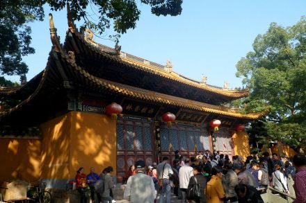 普濟禪寺又稱前寺,始建于宋元豐年間(1078年—1085年),是普陀山第一大寺,也是全國重點寺院,歷代全山方丈均住錫于此。寺院規(guī)模宏大,有“五步一樓,十步一閣”之稱,全寺殿堂六進(jìn),自南向北貫串在一條中軸線上。其中大圓通殿是普濟寺主殿,殿中供奉高8.8米的毗盧觀音為菩薩正身法像,兩邊端坐觀音“三十二應(yīng)身”,以示觀音大士感應(yīng)世間萬物眾生。