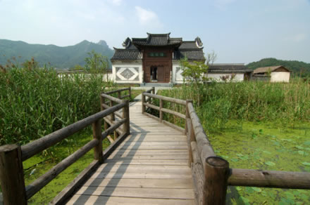 陸家莊在《神雕俠侶》中是陸展元、陸立鼎兩兄弟的莊院,小說第一回中寫道的故事情節(jié)就是在這府院發(fā)生的。陸家莊是影城中相對獨(dú)立的一個景點(diǎn),主要由碼頭、風(fēng)雨亭、路棚、陸家莊院和農(nóng)戶院組成。這里三面有湖,展現(xiàn)的是古代農(nóng)村自然淳樸的風(fēng)格和農(nóng)家田園風(fēng)光。